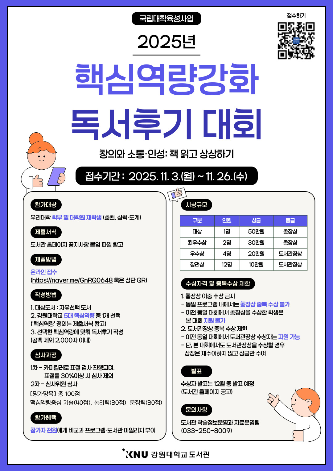 ¶ 시상규모: 상장(강원대학교 총장상·도서관장상) 및 상금(장학금) 총 310만원