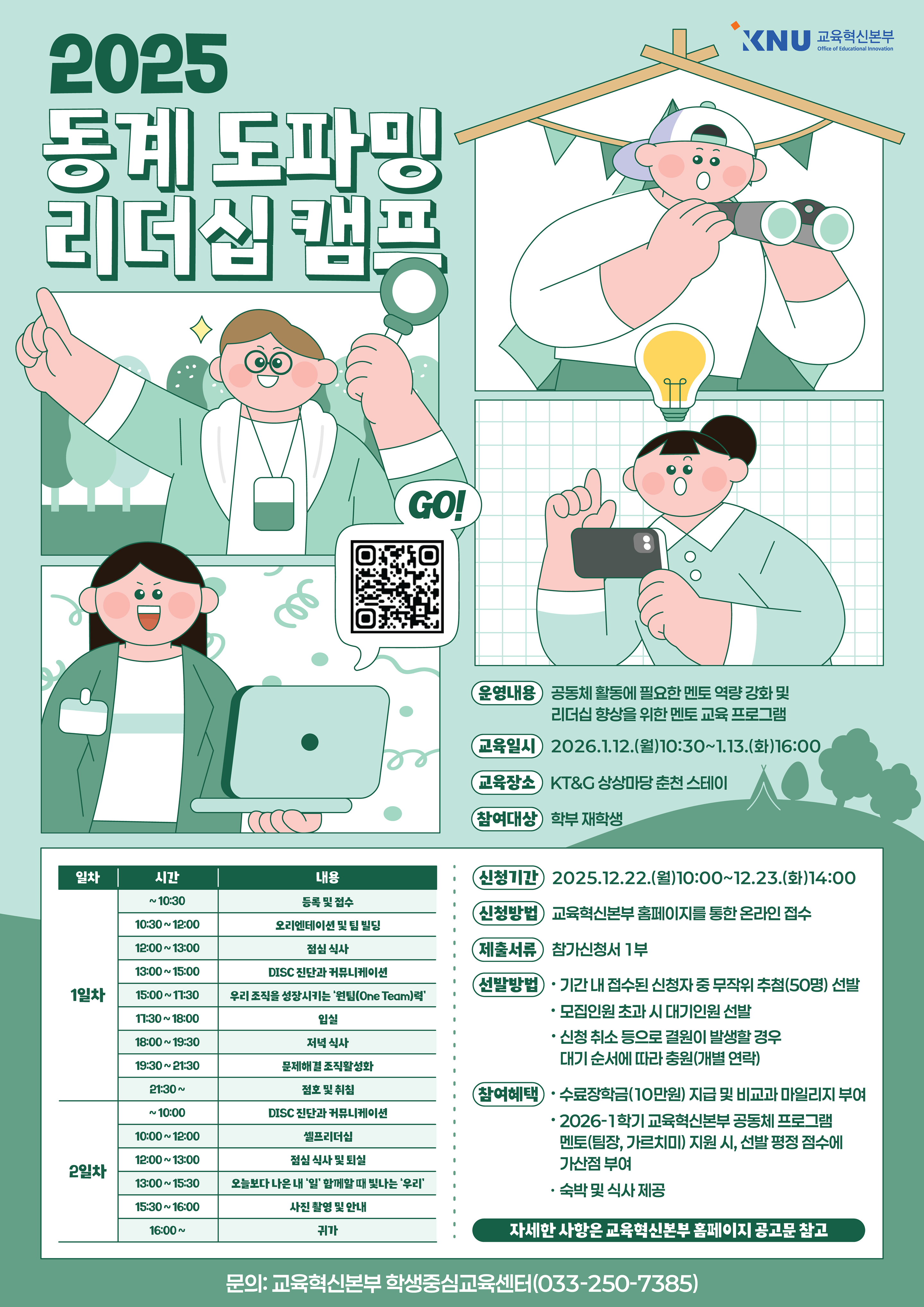 2. 멘토 역량 강화 및 리더십 향상을 위한 2025학년도 동계 도파밍 리더십 캠프를 다음과 같이 시행하오니재학생에게 홍보 및 안내하여 주시기 바랍니다.
